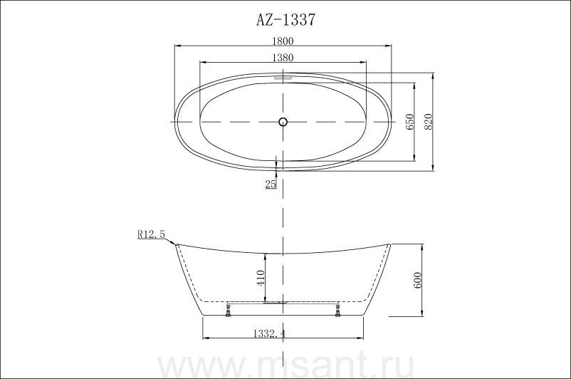 Ванна акриловая Azario EASTON 180x82 с черными внешними стенками, сифоном и металлической рамой