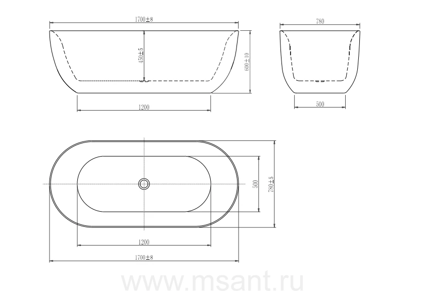 Ванна акриловая,отдельностоящая, AQUATEK AQ-144778BL АФИНА 1700 * 780 * 600. В комплекте со сливом и ножками.Цвет: черный глянцевый.