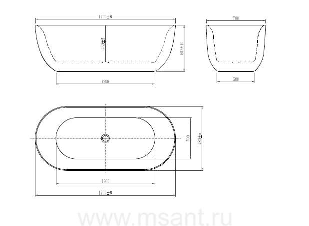 Ванна акриловая, пристенная, AQUATEK AQ-113775WT ЭЛЕГИЯ 1700 * 750 * 580 , В комплекте со сливом и ножками.Цвет: белый глянцевый.