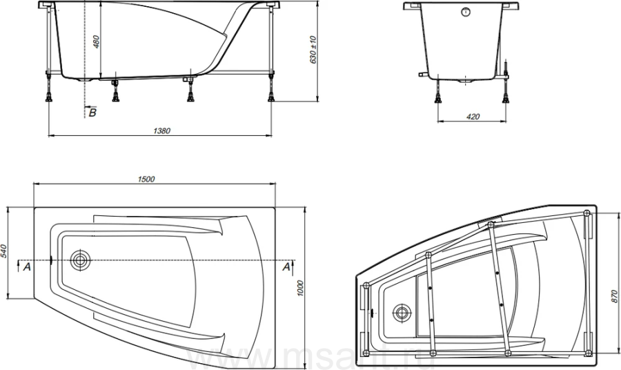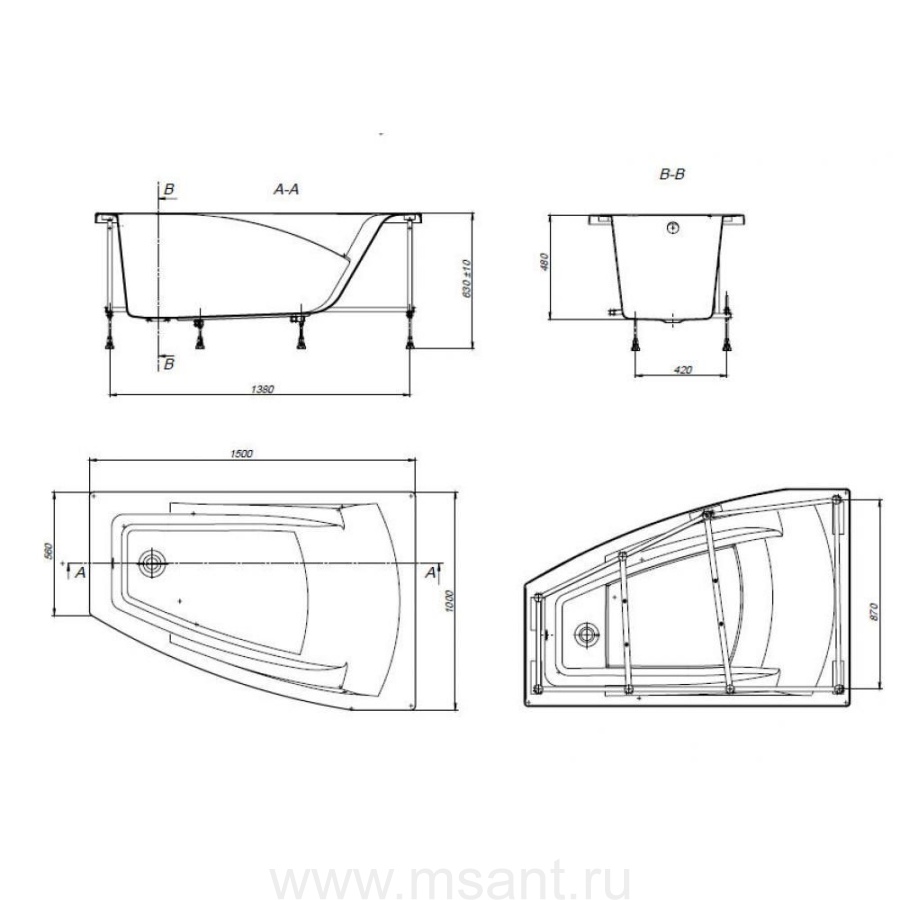 Акриловая ванна Roca Hall Angular ZRU9302865 150x100см R (правая)