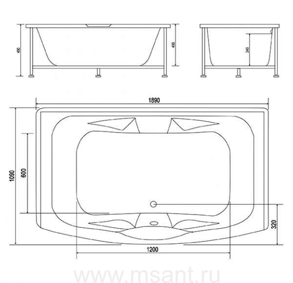 Ванна акриловая Sole (Mirsant) Delta 190x109