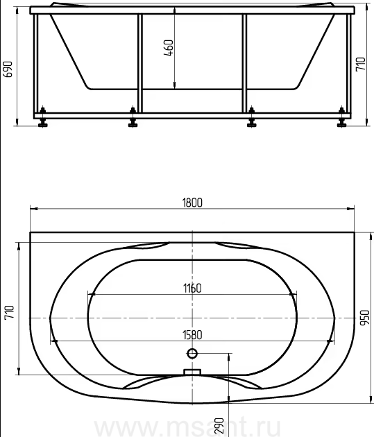 Акриловая ванна Акватек Мелисса вклеенный каркас