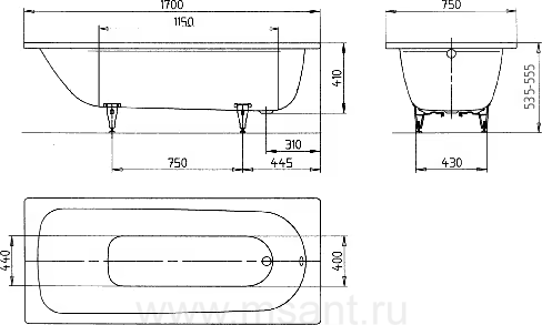 Стальная ванна Kaldewei Advantage Saniform Plus 373-1 170x75