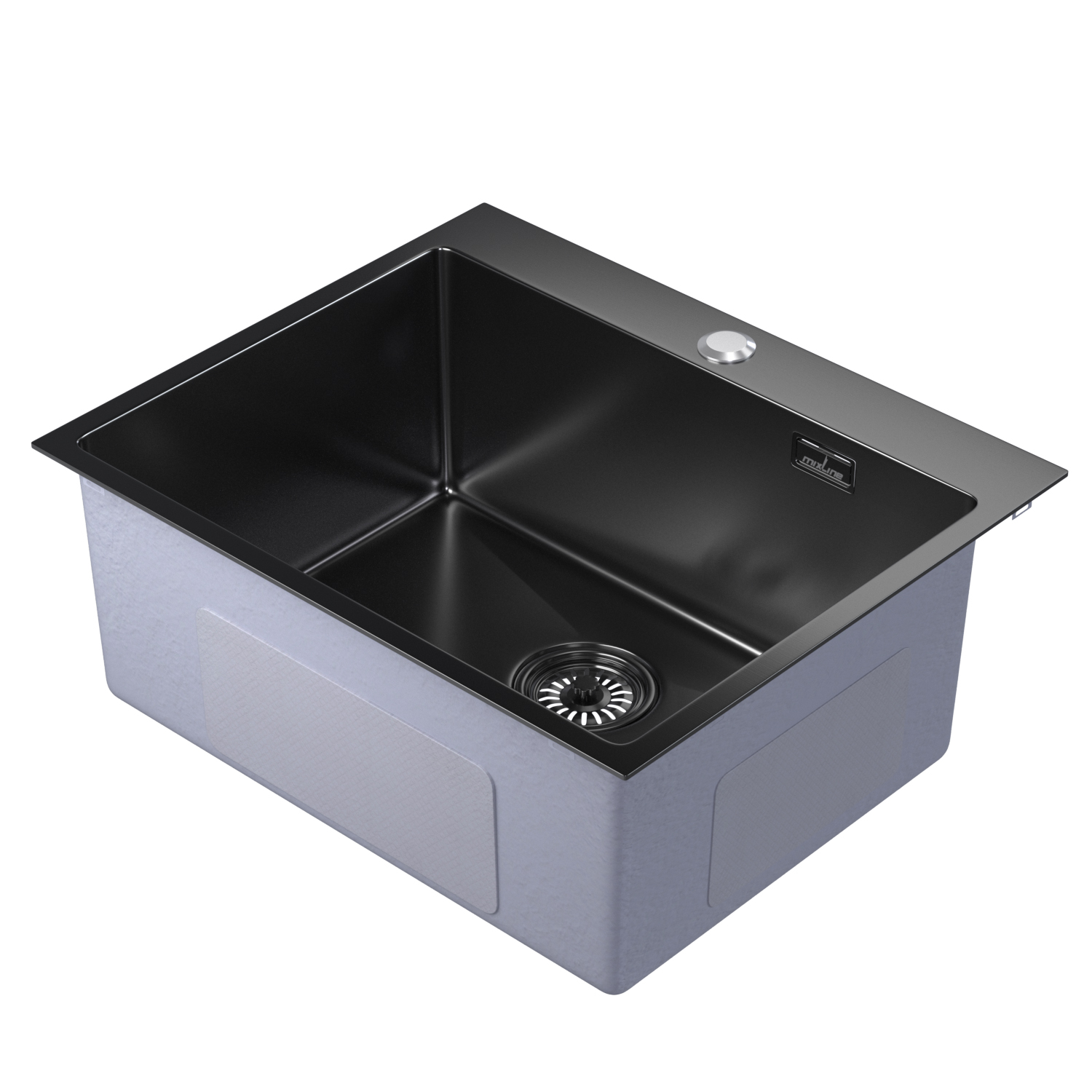 Мойка настол.монтаж 60х50 (3,0) вып 3 1/2 MIXLINE PRO 22см с сифоном (черный графит)