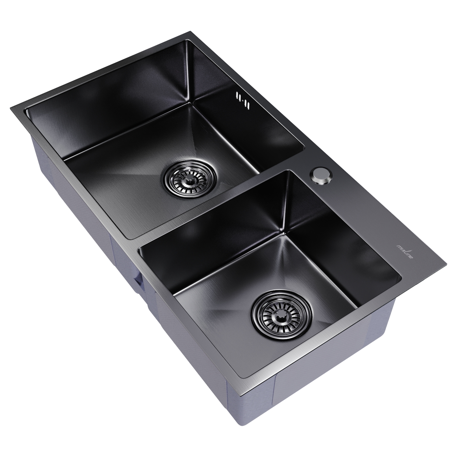 Мойка настол.монтаж 72х40 (3,0) 2-х ЧАШЕВАЯ вып 3 1/2 MIXLINE PRO 22см с сифоном (черный графит)
