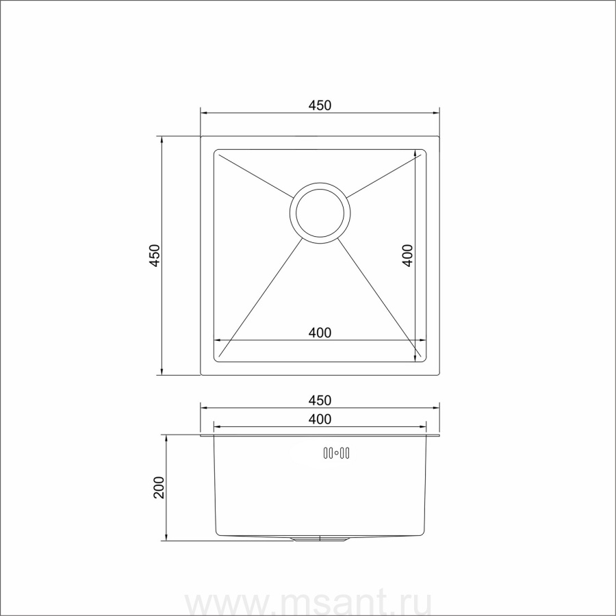 Мойка подст.монтаж 45х45 (3,0) вып 3 1/2 MIXLINE PRO 20см с сифоном (черный графит)