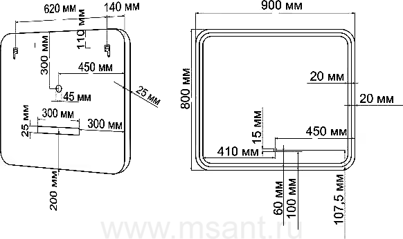 Зеркало Art&Max Genova 90х80 с подсветкой