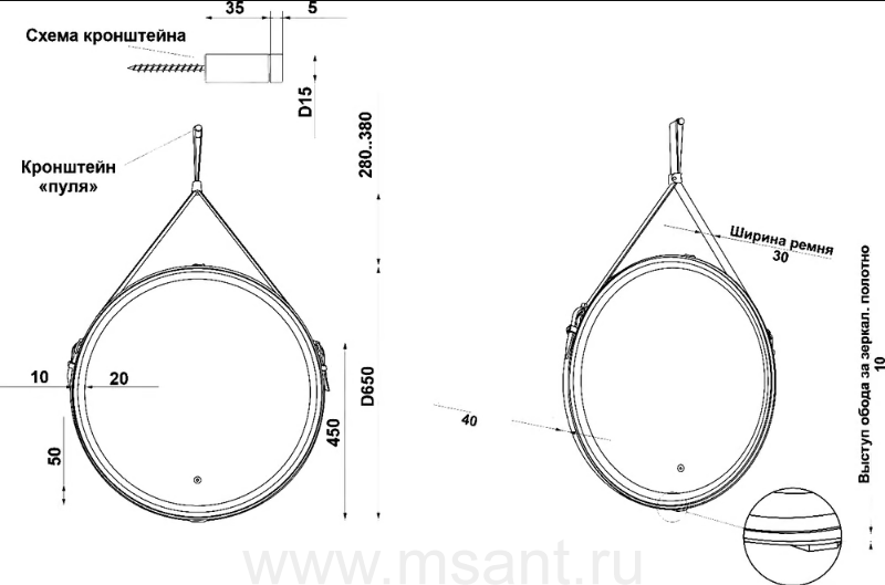 Зеркало Art&Max Milan 65 черный ремень