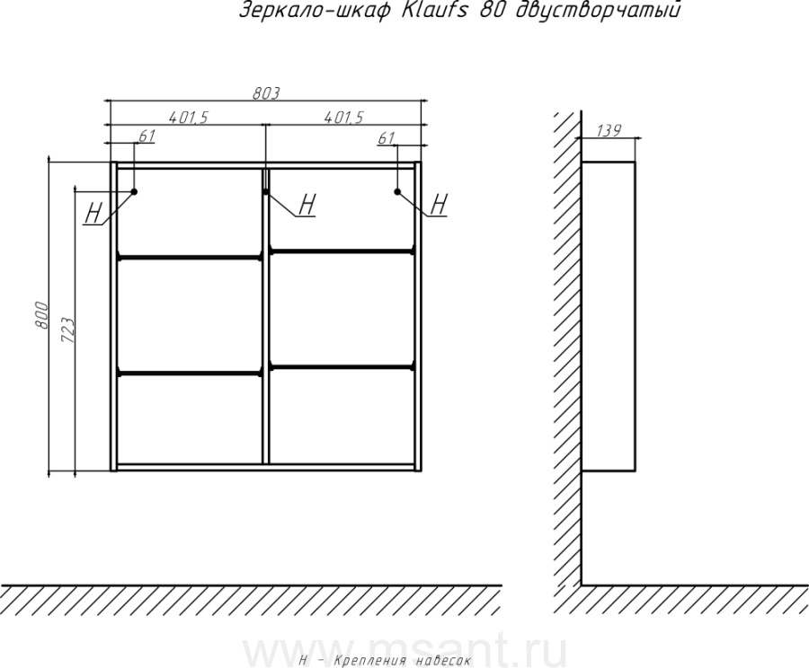 Зеркало-шкаф Velvex Klaufs 80 черное