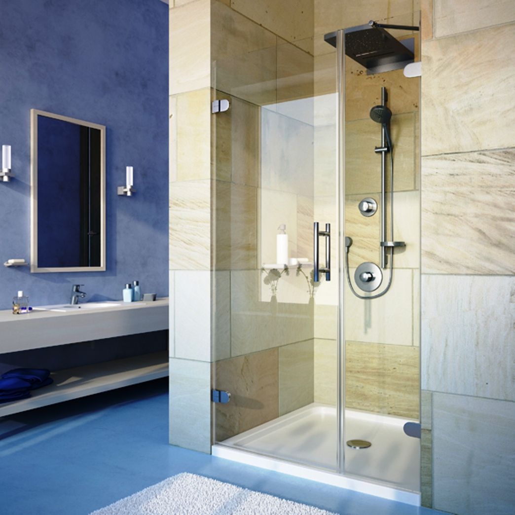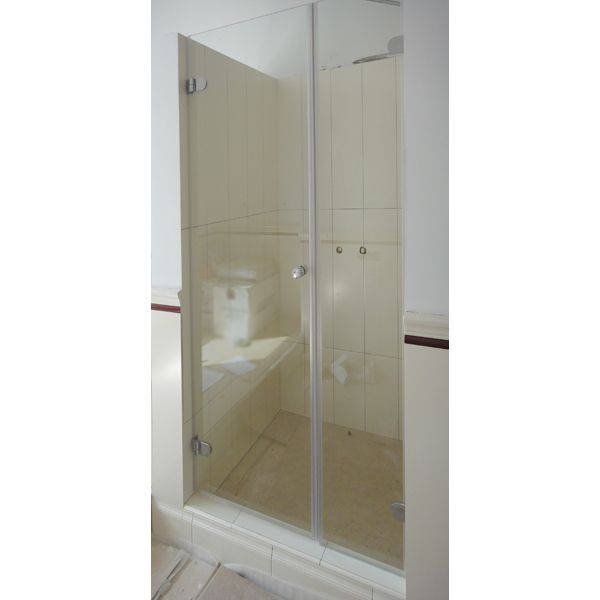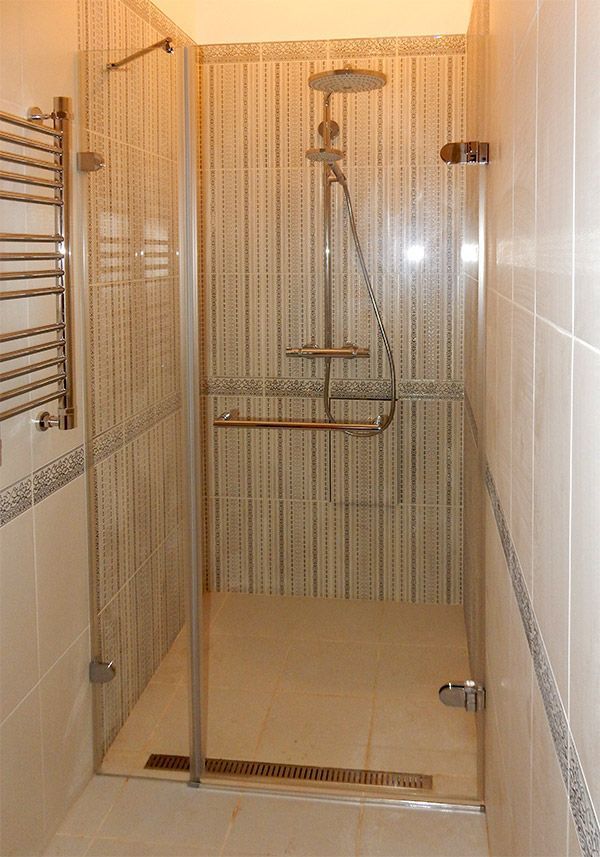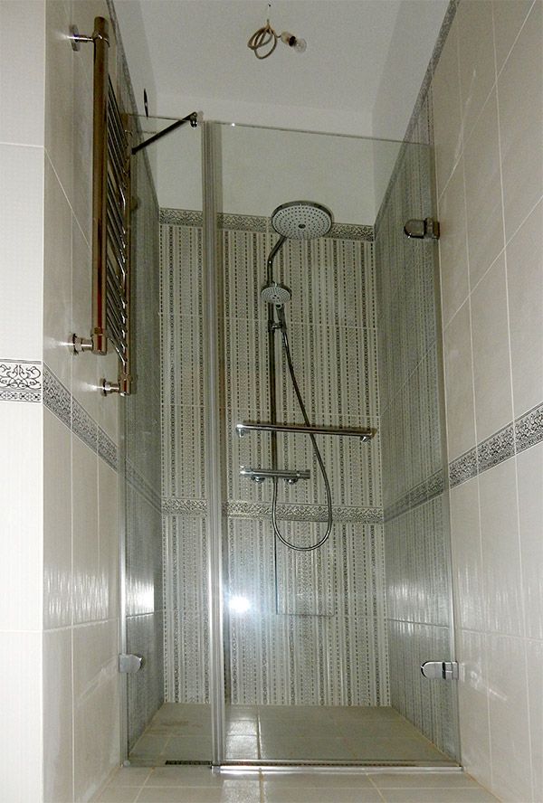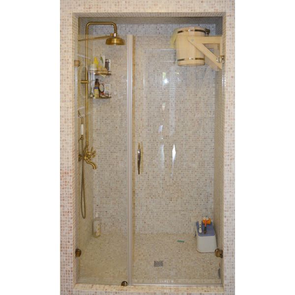 Дверь в душевую нишу двухсегментная распашная с открыванием двери наружу и подъемно-опускным механизмом в стандартном и индивидуальном исполнении