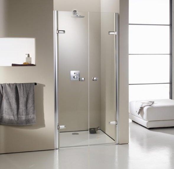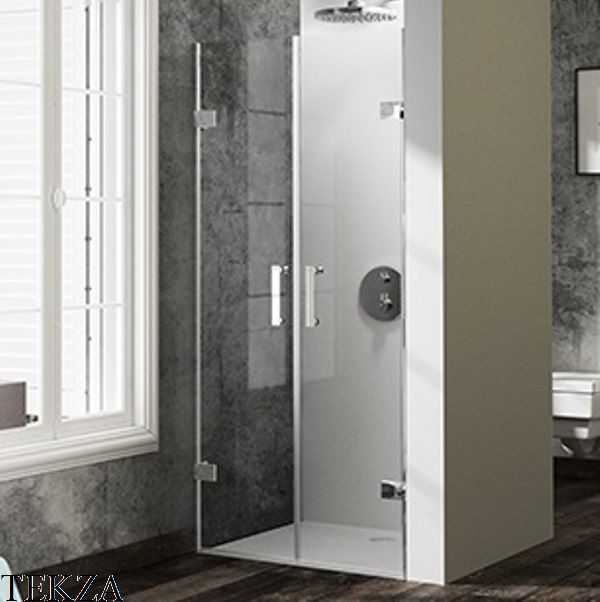 Дверь в душевую нишу двустворчатая распашная с открыванием наружу или в обе стороны в стандартном и индивидуальном исполнении