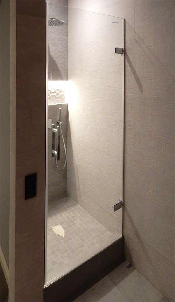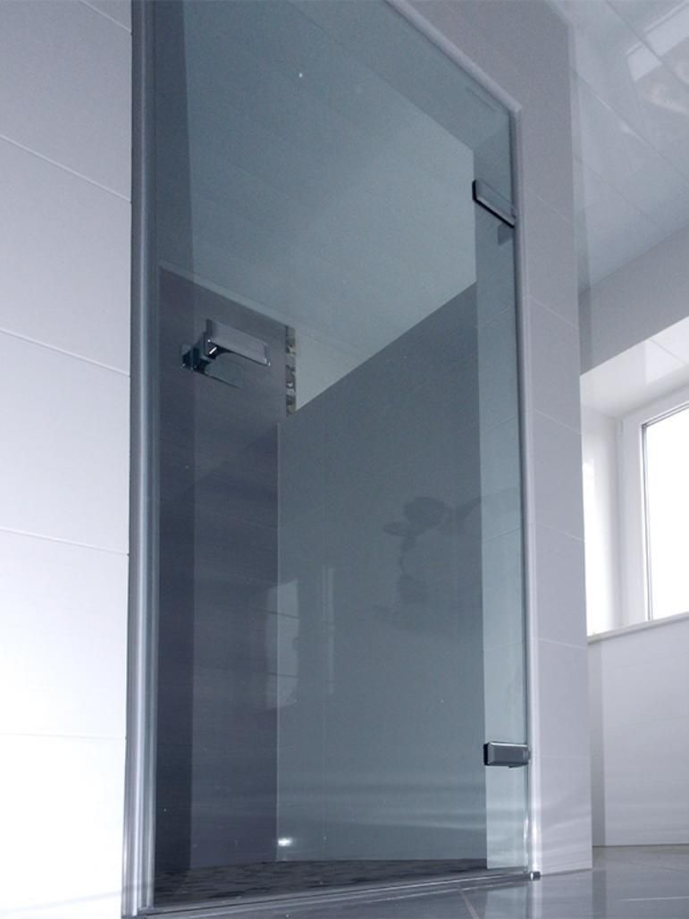 Дверь в душевую нишу одностворчатая поворотная в обе стороны или только наружу в стандартном и индивидуальном исполнении