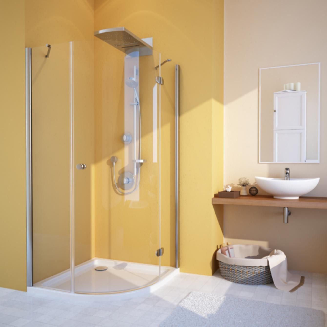 Полукруглые душевые ограждения (четверть круга) из стекла