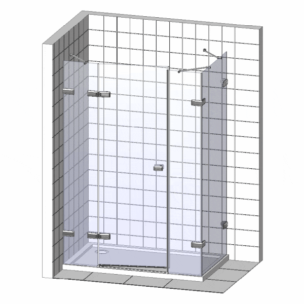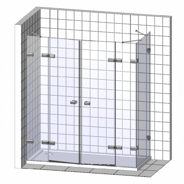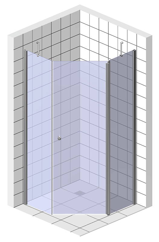 Душевое ограждение трехсегментное с распашной дверью с открыванием двери наружу или в обе стороны