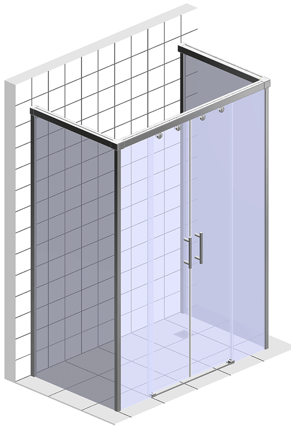 Душевое ограждение четырехсегментное раздвижное вход с угла