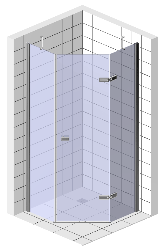 Душевое ограждение пятиугольное трехсегментное с открыванием двери наружу или в обе стороны