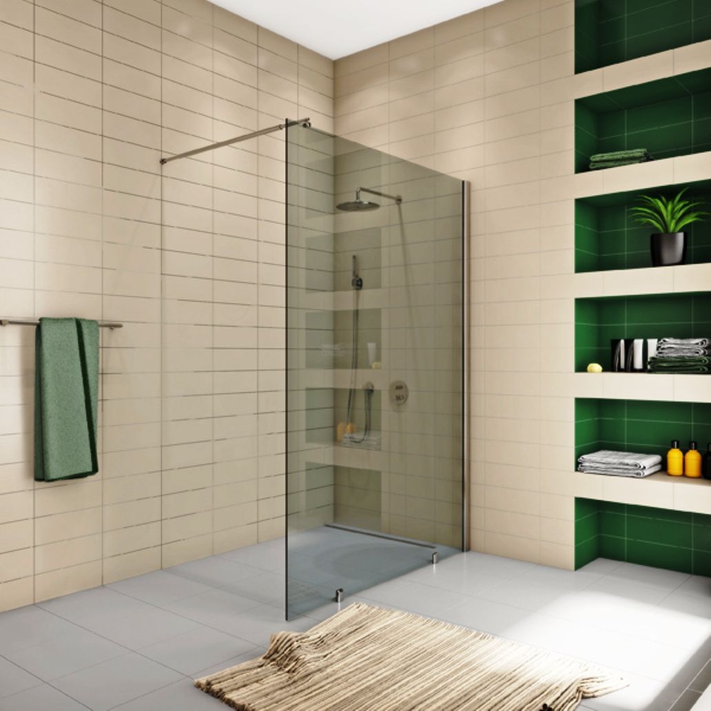 Душевая перегородка неподвижная односегментная с креплением в пол и телескопическим поперечным стабилизатором 80-140 см