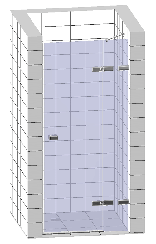 Дверь в душевую нишу двустворчатая распашная с открыванием наружу или в обе стороны