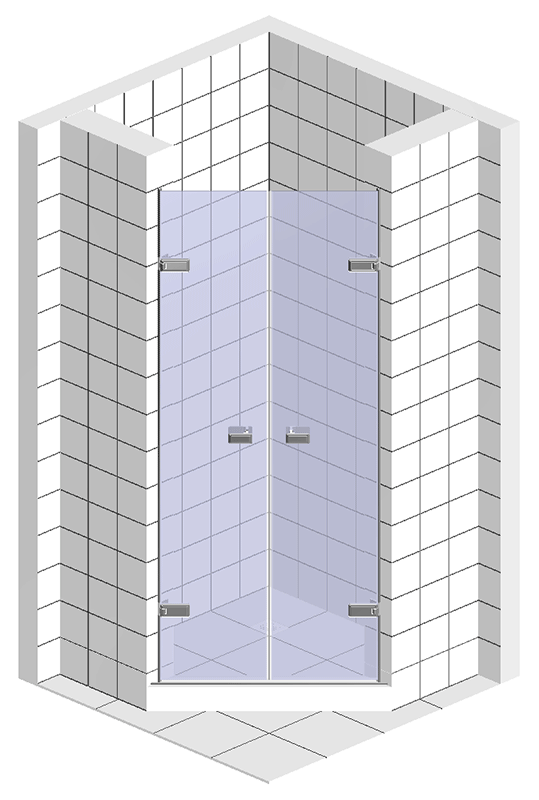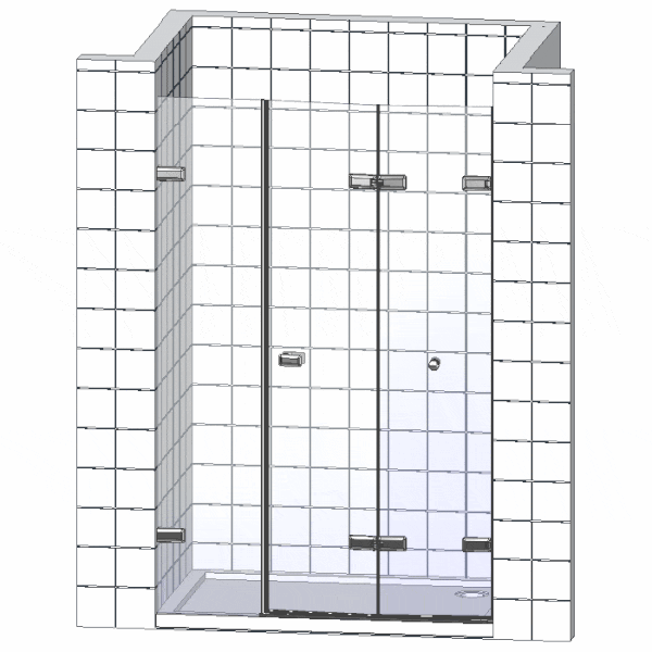 Дверь в душевую нишу двустворчатая складная поворотная в обе стороны