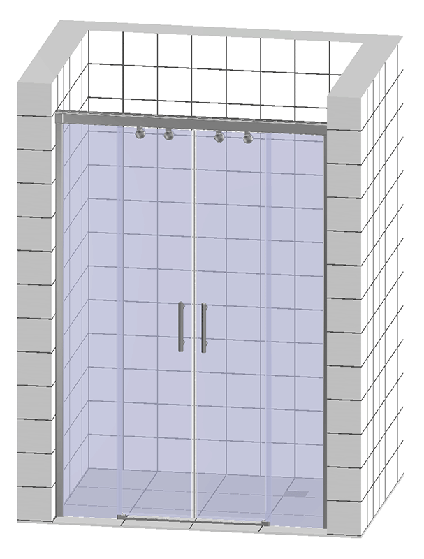 Дверь в душевую нишу двухсегментная раздвижная с отстегивающимися роликами из латуни и фторопласта