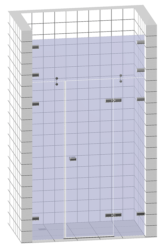 Дверь в душевую нишу двустворчатая с открыванием наружу или в обе стороны