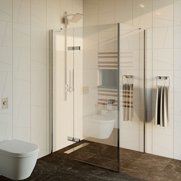 Душевое ограждение трехсегментное с открыванием двери наружу или в обе стороны и стенным креплением на профиле в стандартном и индивидуальном исполнении