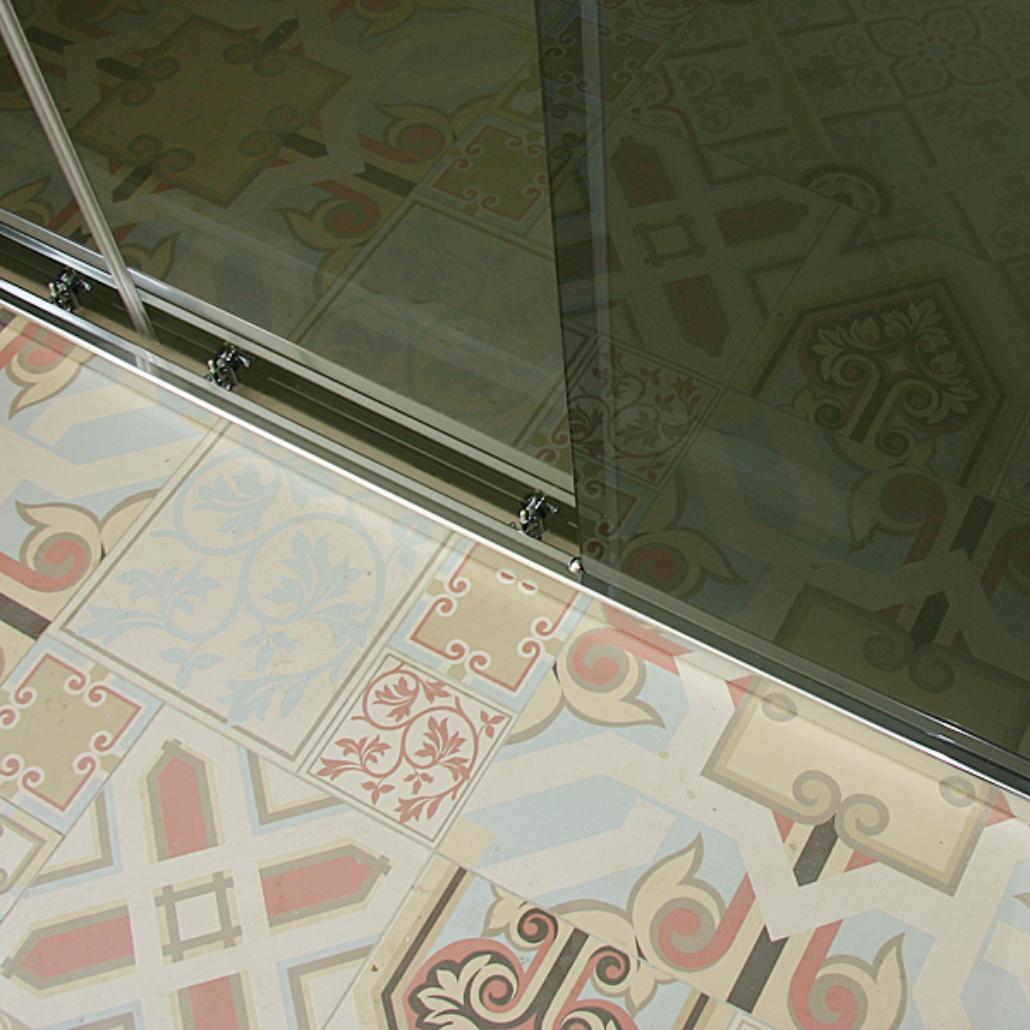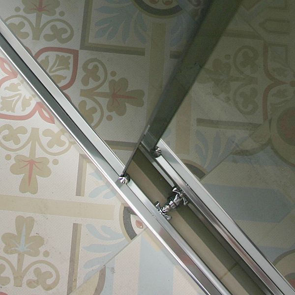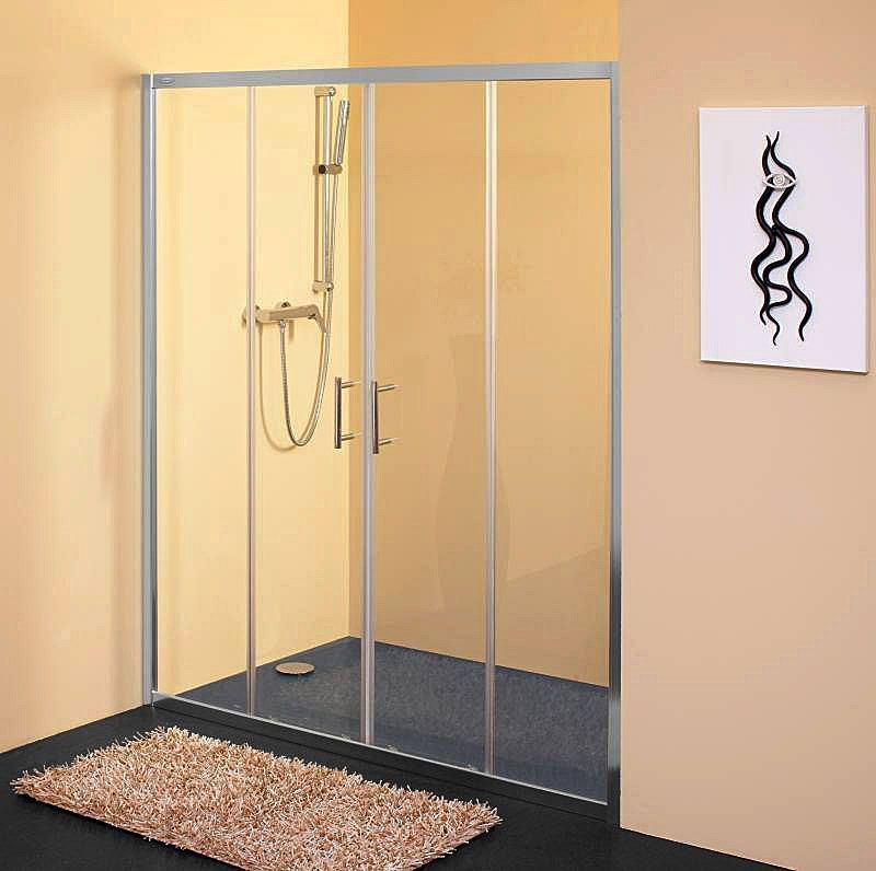 Дверь в душевую нишу четырехсегментная раздвижная с отстегивающимися роликами из латуни и фторопласта в стандартном и индивидуальном исполнении