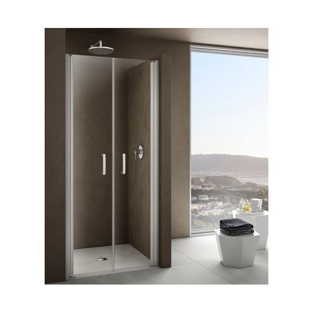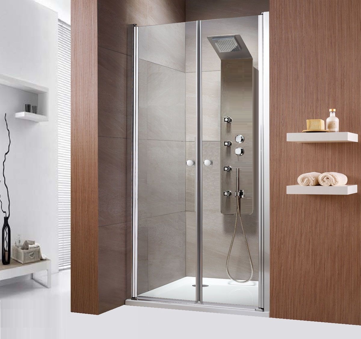 Дверь в душевую нишу двухстворчатая распашная с открыванием в обе стороны и подъемно-опускным механизмом в стандартном и индивидуальном исполнении