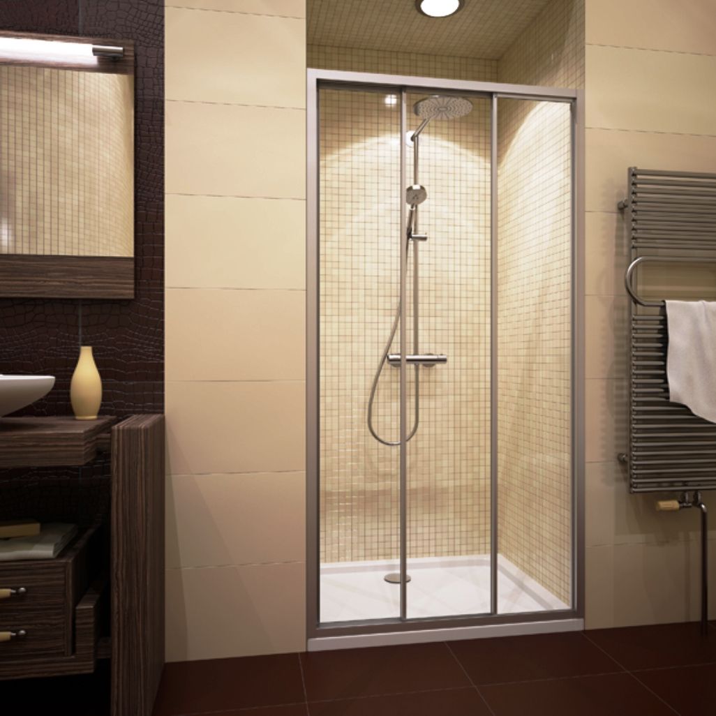 Дверь в душевую нишу трехсегментная раздвижная две створки подвижные в стандартном и индивидуальном исполнении