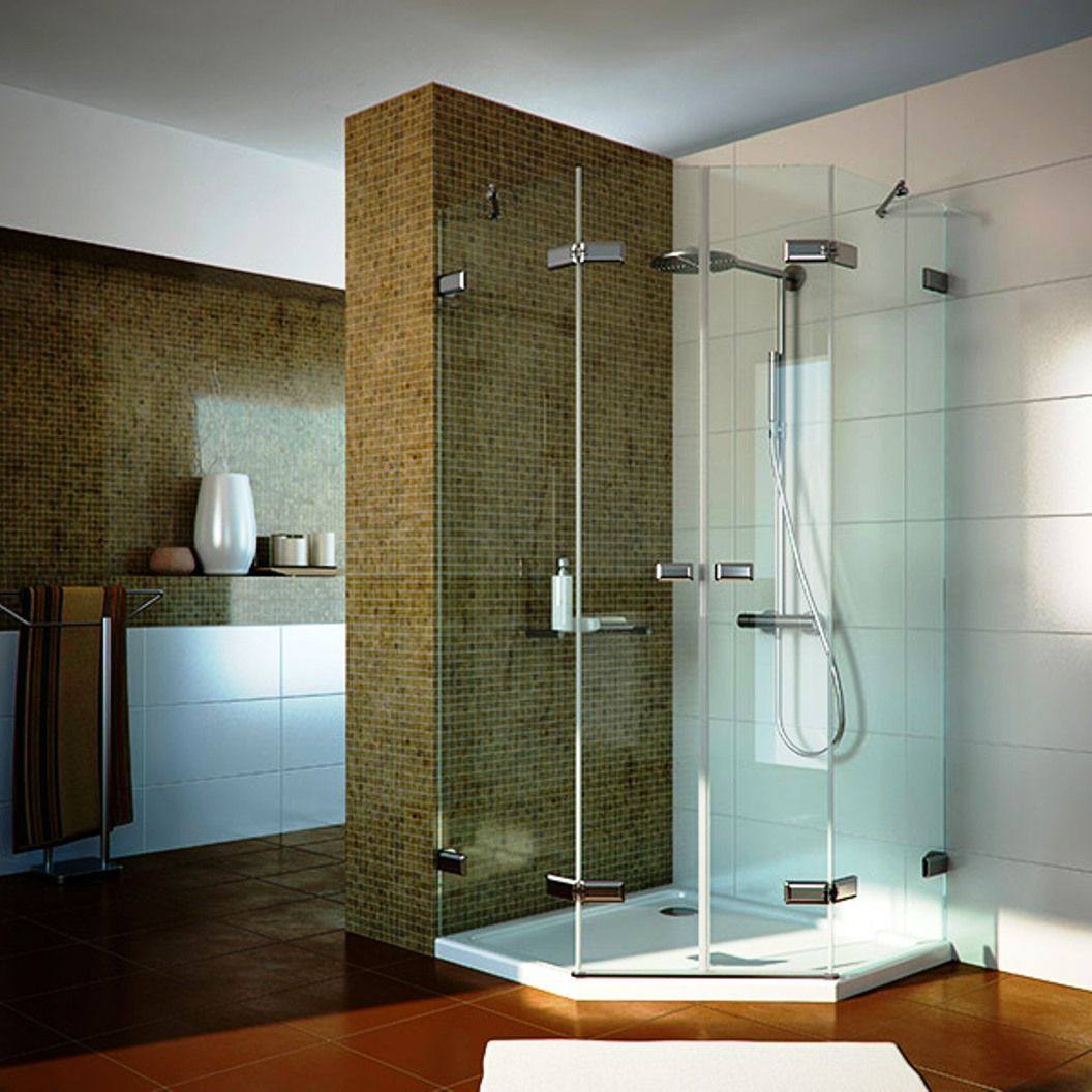 Пятиугольные душевые ограждения из стекла