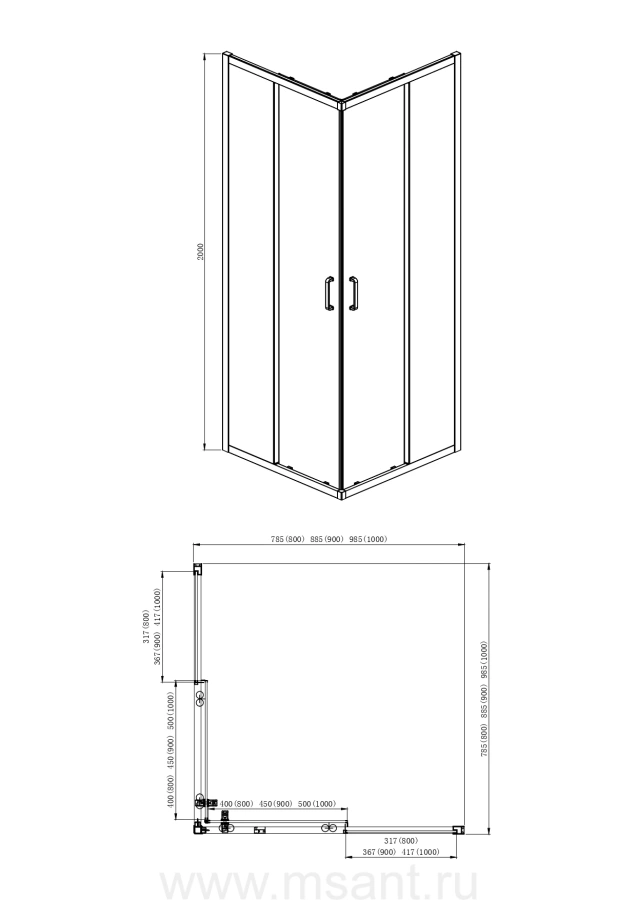 AQ NAA 1142-100 (новый артикул AQ ARI KV10020CH) Душевой уголок квадратный, двери раздвижные AQUATEK профиль хром, стекло прозрачное