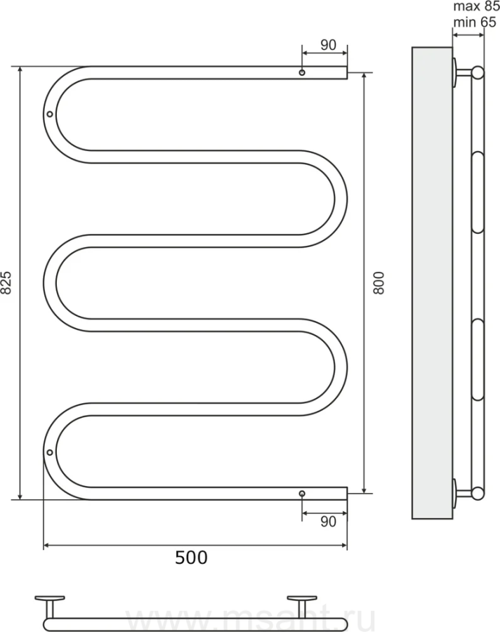 Полотенцесушитель электрический Terminus Ш-образный 500x800