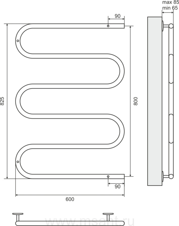 Полотенцесушитель электрический Terminus Ш-образный 600x800