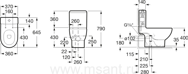Чаша для унитаза-компакта Roca Meridian 342247000