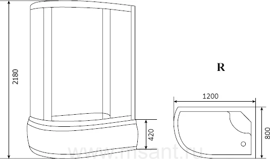 Душевая кабина Timo Eco TE-0720 R с высоким поддоном, с сиденьем