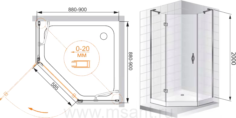 Душевой уголок Cezares BERGAMO-W-P-1-90-C-Cr-L-IV