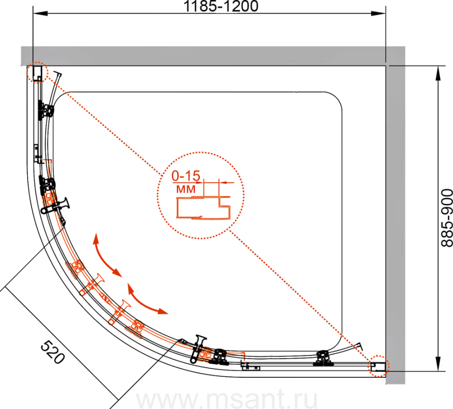 Душевой уголок Cezares Eco RH 2 120/90 P Cr стекло punto