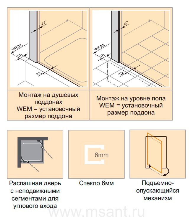 Душевые уголки (ограждения), двери, шторки и поддоны Huppe