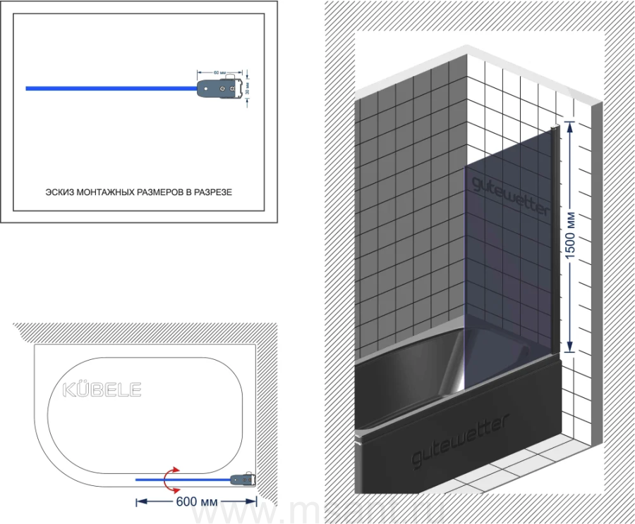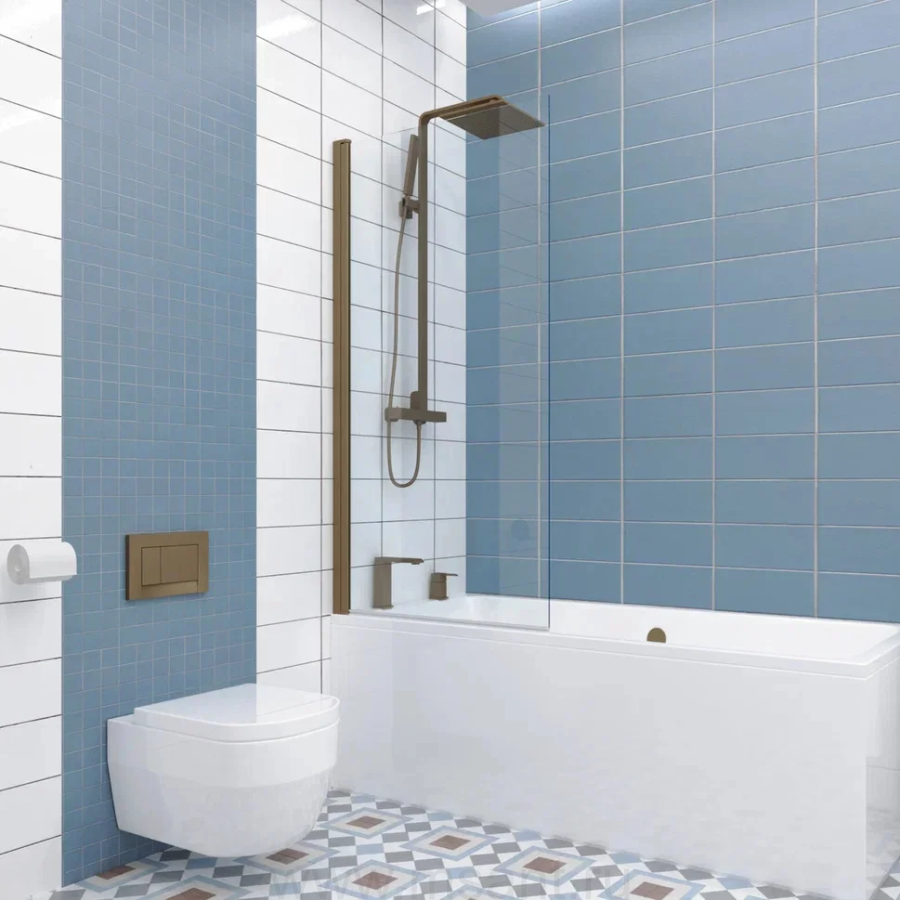 Шторка на ванну Kubele DE020 DE020P601-CLN-BR-60х150 150х60, профиль бронза светлая