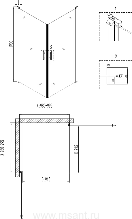 Душевой уголок Niagara Nova NG-6804-08 BLACK 100x100, квадратный, черный