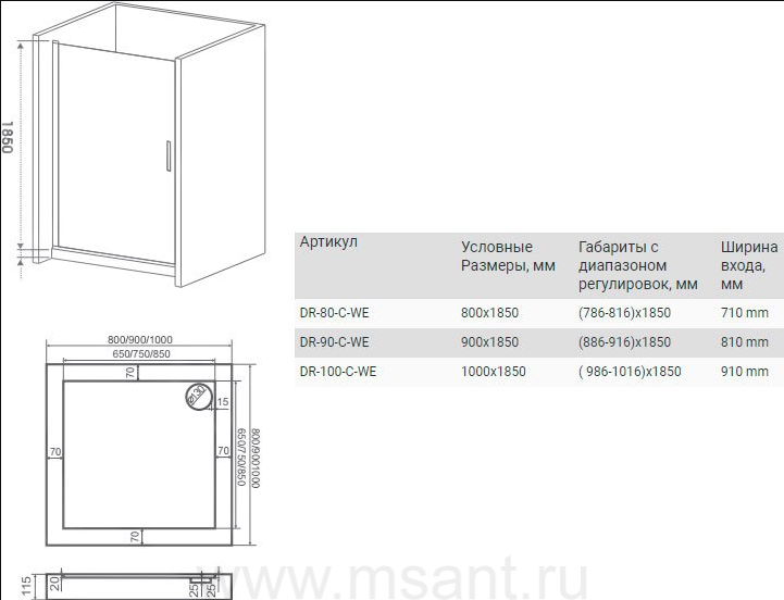 Душевая дверь в нишу Good Door Mokka DR-100-C-WE