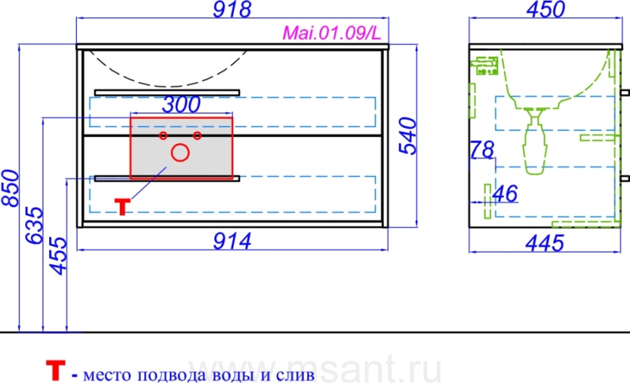 Мебельная раковина Aqwella 5 stars Malaga 90 L
