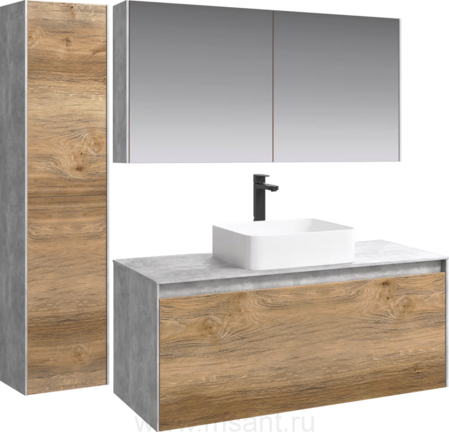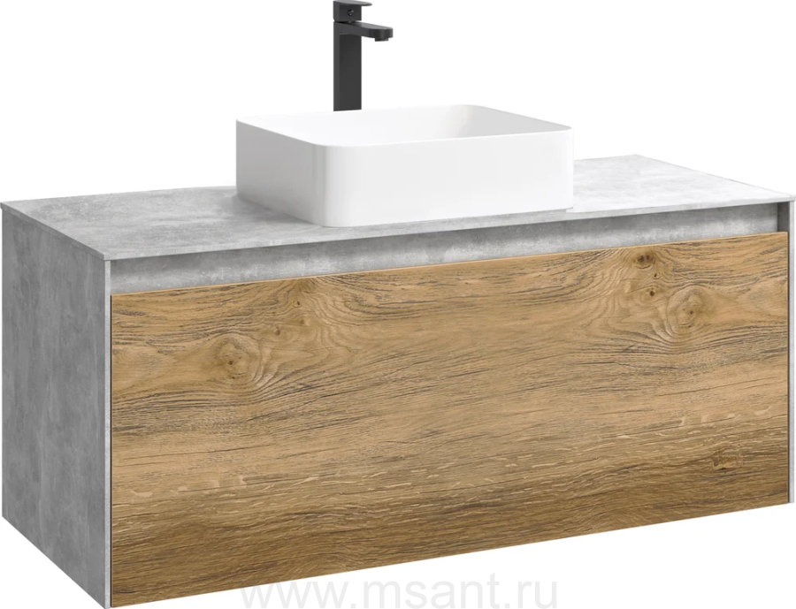 Тумба с раковиной Aqwella 5 stars Mobi 120 бетон светлый, дуб балтийский