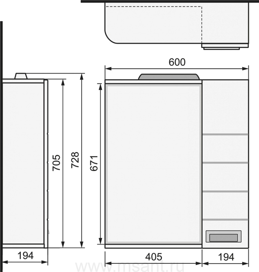 Зеркало-шкаф Raval Kub 60 R белый