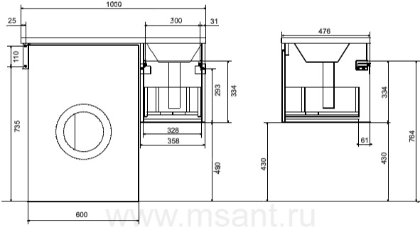 Мебель для ванной Эстет Dallas Luxe 100 подвесная, 1 ящик, под стиральную машину, R