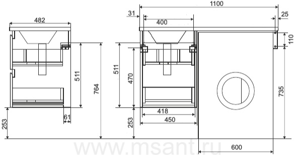 Мебель для ванной Эстет Dallas Luxe 110 подвесная, 2 ящика, L с раковиной
