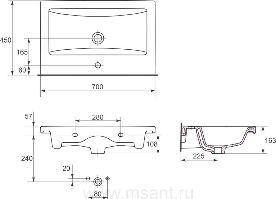 Мебель для ванной Marka One Mix 70Н с 3 ящиками, белый глянец, ручки рейлинг