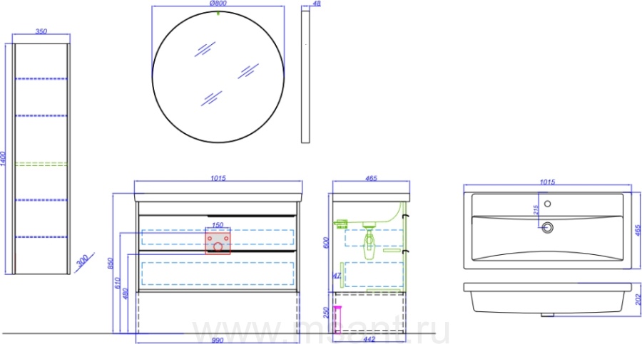 Мебель для ванной Aqwella Fargo 100 дуб балтийский