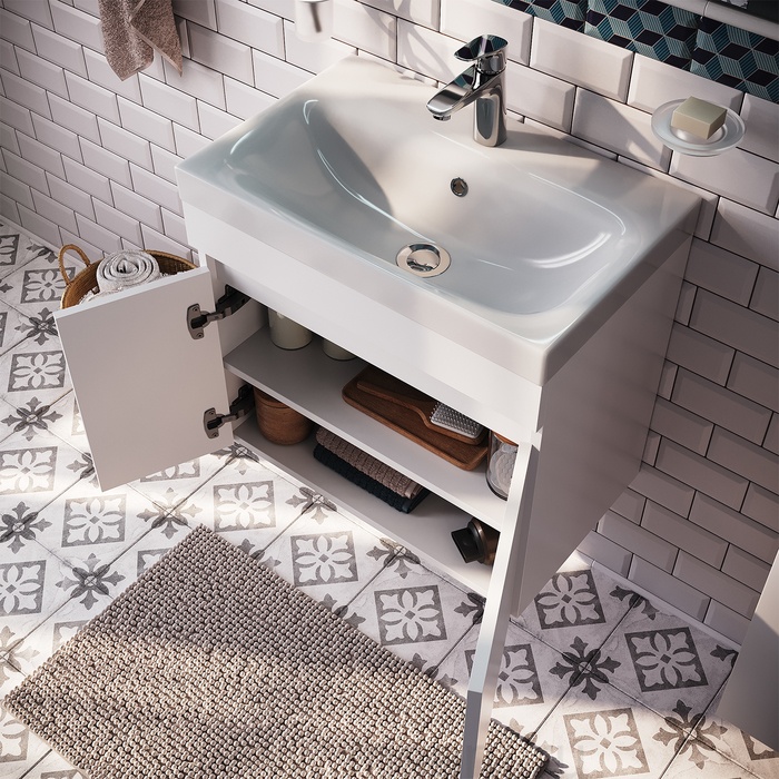Тумба с умывальником подвесная с дверцами, белая, 60 см, Zodiac, IDDIS, ZOD6CD0i95K подходит ум. 3506000i28