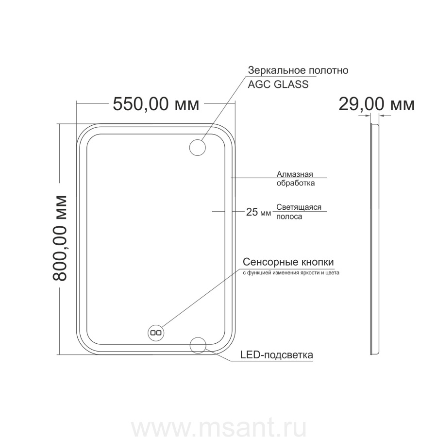 Зеркало MIXLINE "Мальта" RGB 550*800 (ШВ) сенсорный выключатель, МУЛЬТИ-ЦВЕТ